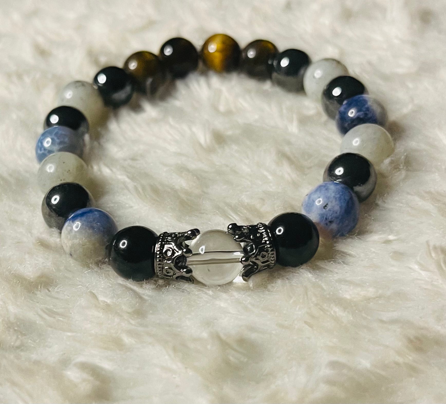 Labradorite, Tigers Eye, and sodalite stretch bracelet for men