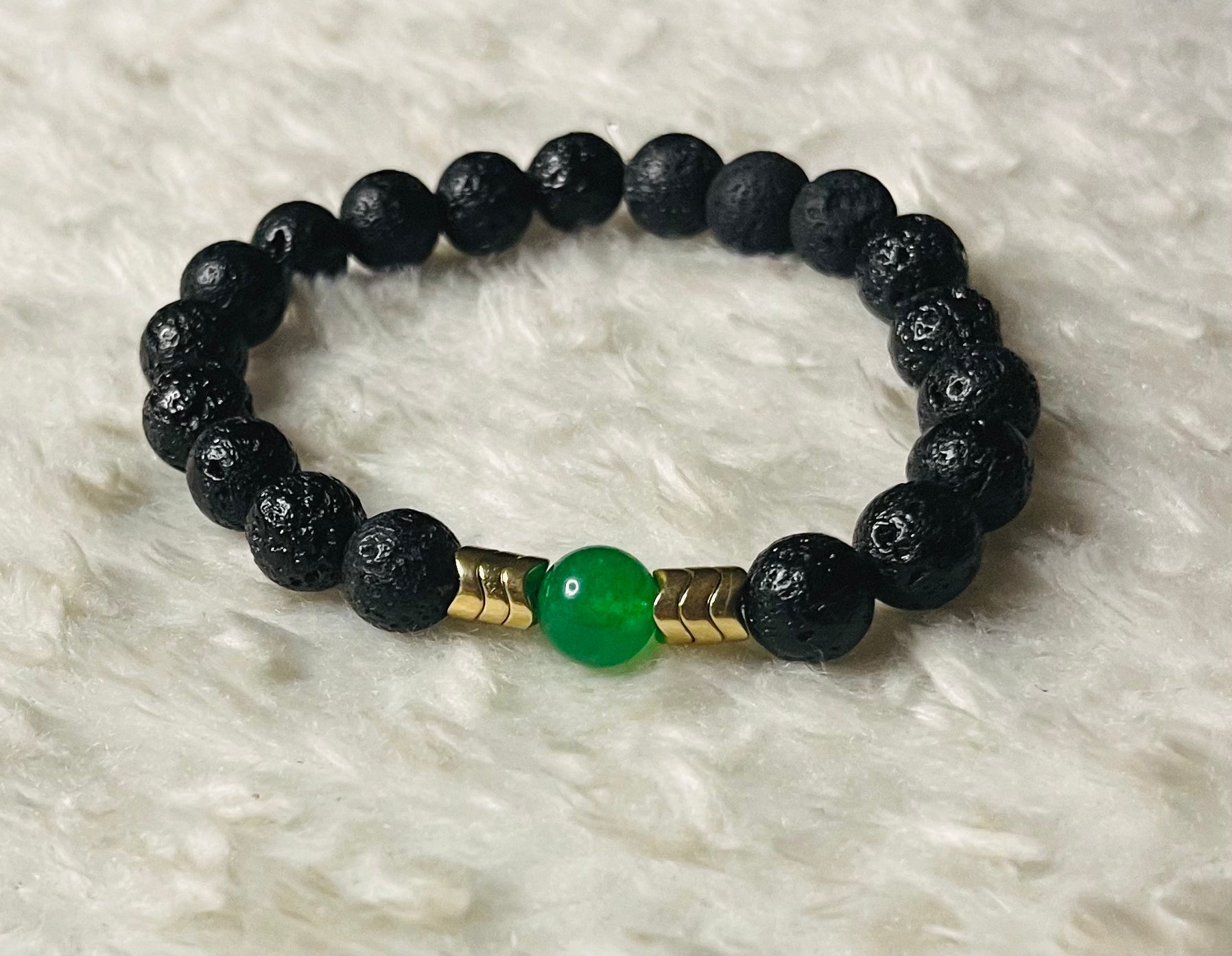 Lava Stone, Green Adventurine, and Gold Hematite stretch bracelet