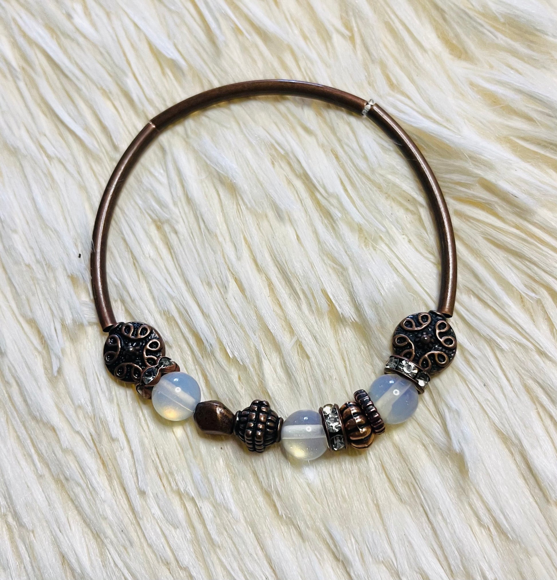 Beautiful copper elastic bracelet adorned with Opal crystals