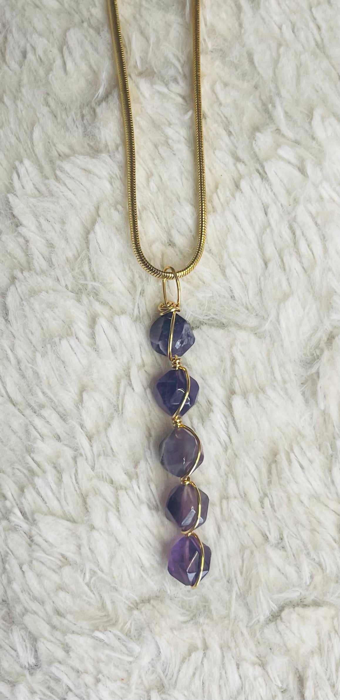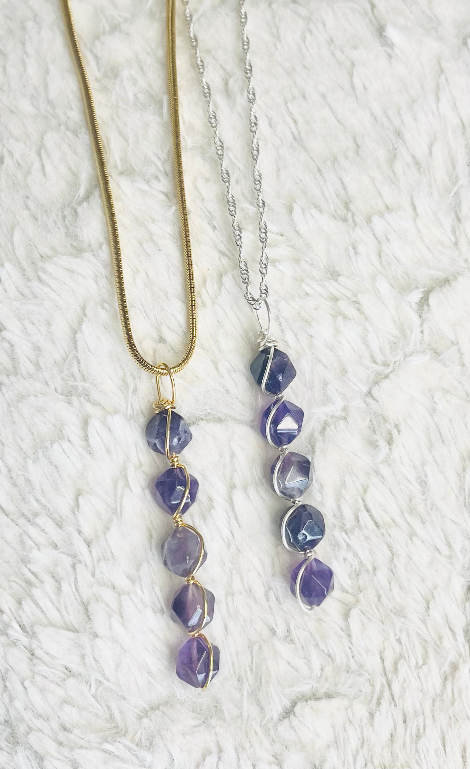 Amethyst is a natural tranquiliser, it relieves stress and strain, soothes irritability, balances mood swings, dispels anger, rage, fear and anxiety. These pendants are available in 14k plated gold or sterling silver