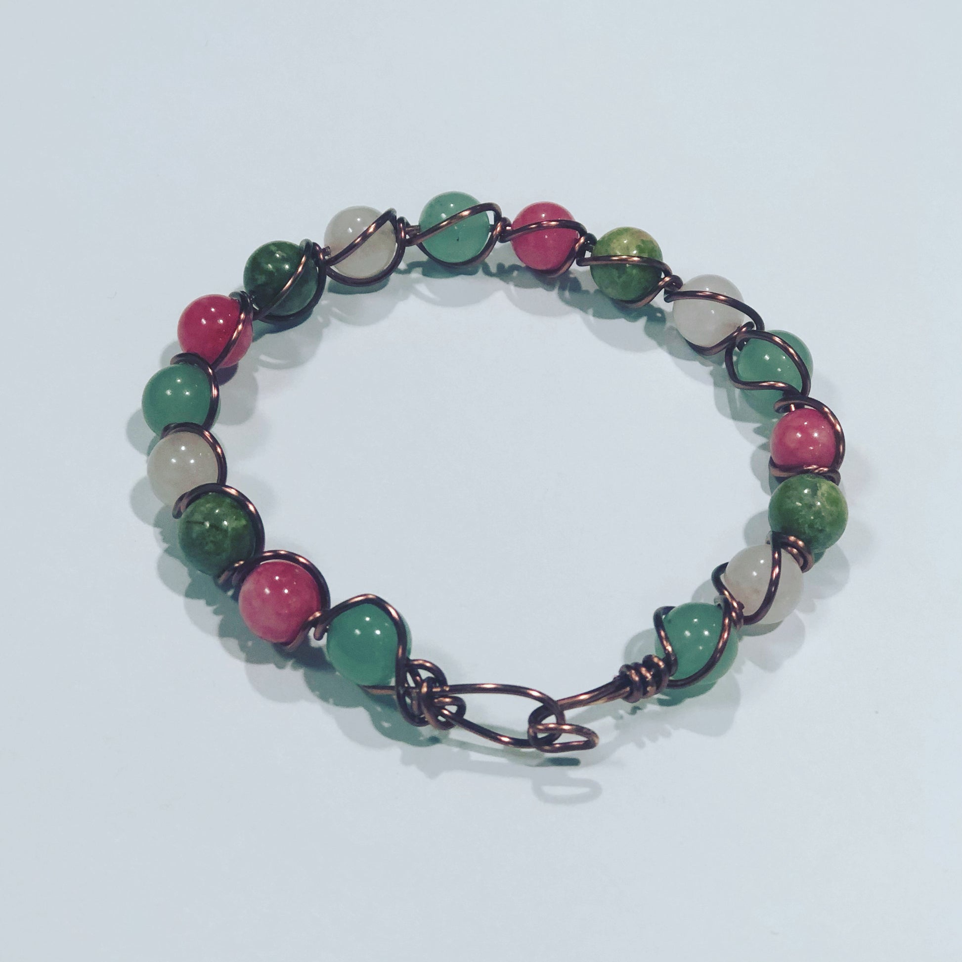 Copper wire wrapped Green Adventurine, Rose Quartz, Unakite and Rhodonite.