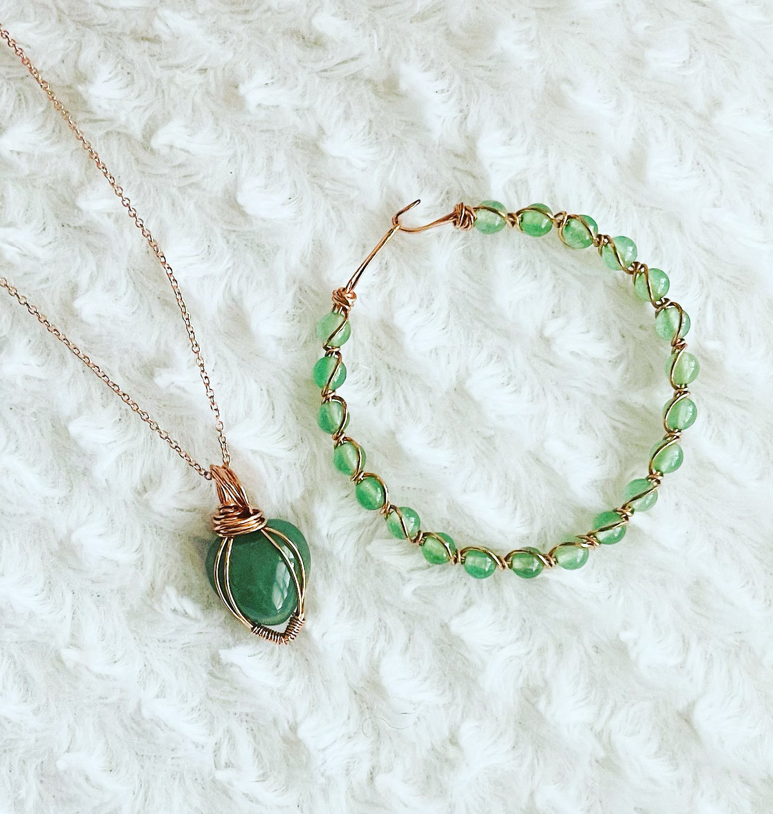 Not only is Green Adventurine aka “The Stone of Opportunity” great for attracting wealth, abundance and luck, it’s also great to work with your heart chakra. Grab this beautiful handmade set for the love of your life!