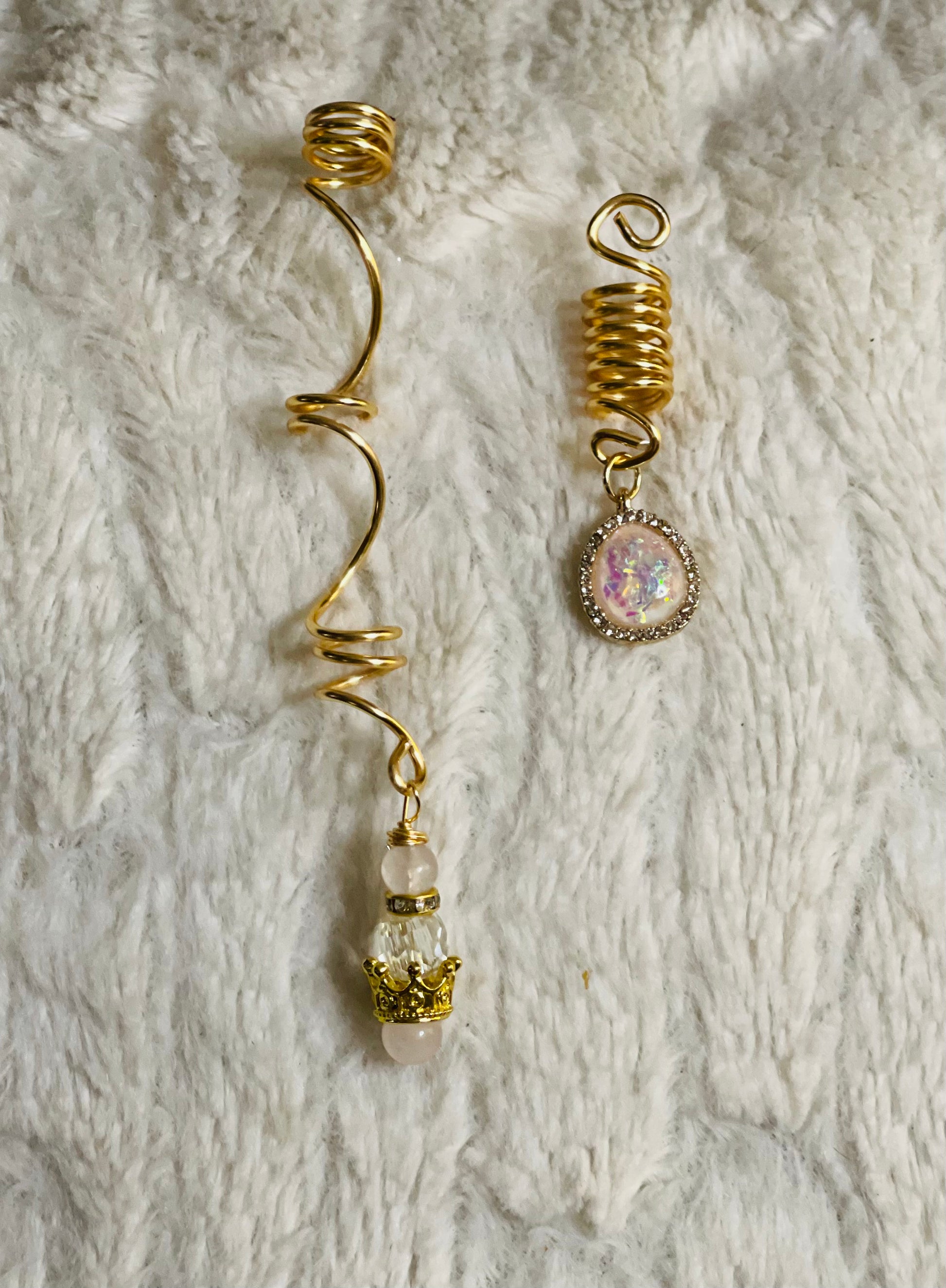 Gold hair charms with Rose Quartz, Clear Quartz, Opal and Swarovski Crystals