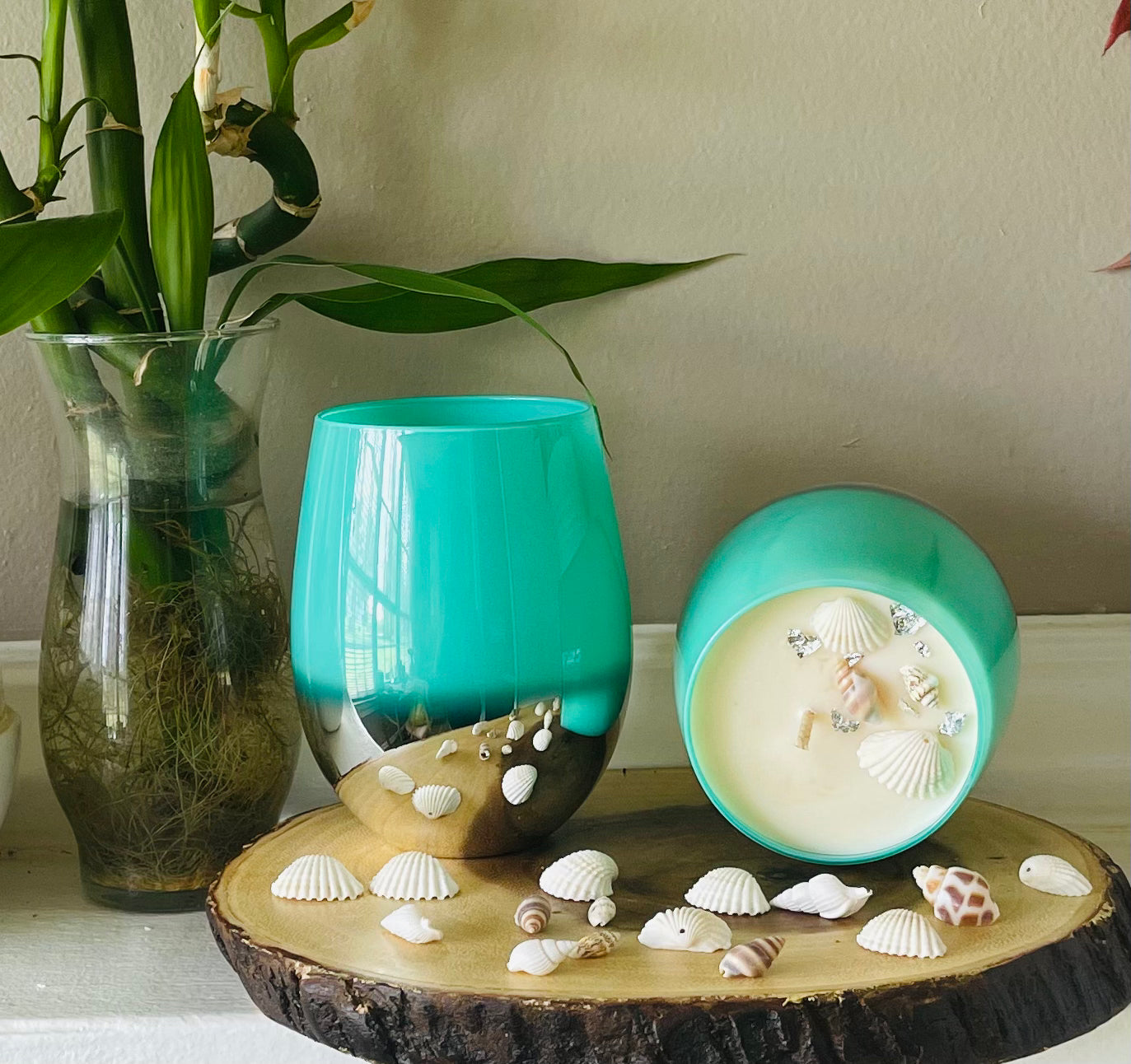 Beautiful candle filled with the aroma of sand and sea