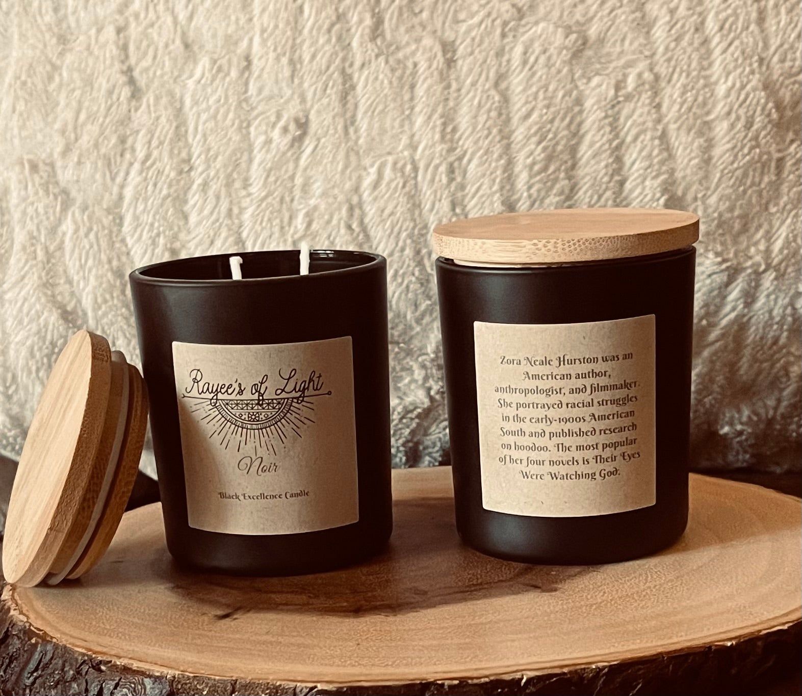 Our NOIR Black Excellence candles soulfully scented with notes of Sandalwood & Vetiver. Each of comes dedicated to a Black Pioneer.