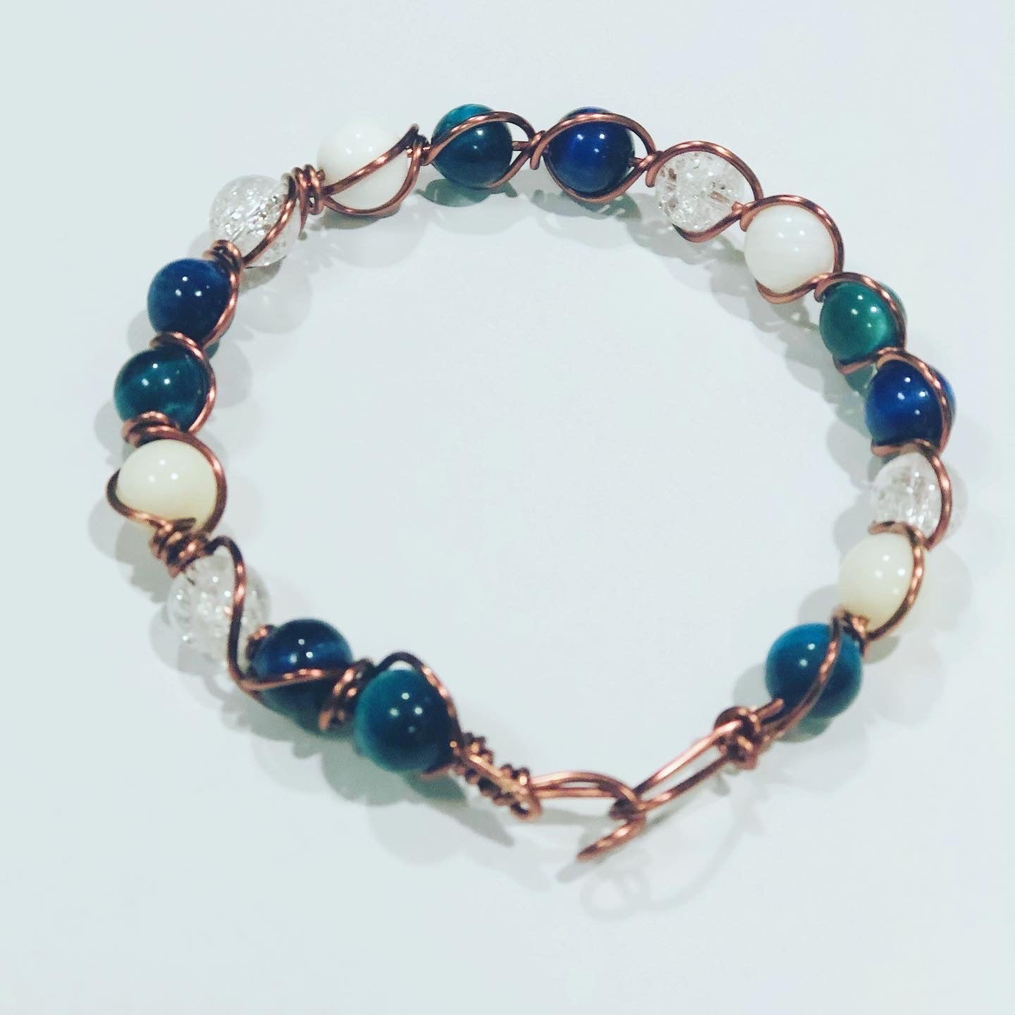 Copper wrapped Blue Tiger Eye, Clear Quartz and Opal